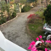 Je kunt de auto op ons eigen terrein parkeren.